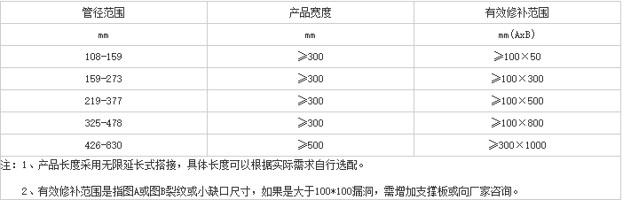 通過多方面用戶反饋發(fā)現(xiàn),90%以上的直管段泄漏屬于單側(cè)泄漏,由于使用單位各種材質(zhì)管道管徑大小參差不齊,造成每種管徑都需備庫(kù),增加了用戶的庫(kù)存壓力。我公司新研發(fā)的廣泛范圍卡扣式修補(bǔ)器(專利號(hào):ZL 2015 2 1136082.9)。主要針對(duì)直管段單側(cè)泄漏的情況,采用卡帶式堵漏技術(shù),該產(chǎn)品適用范圍廣,減少用戶庫(kù)存壓力;靈活方便,安裝快捷;膠板采用無限延長(zhǎng)型結(jié)構(gòu),突破了修補(bǔ)長(zhǎng)度限制,給用戶帶來了非常便捷的堵漏條件。